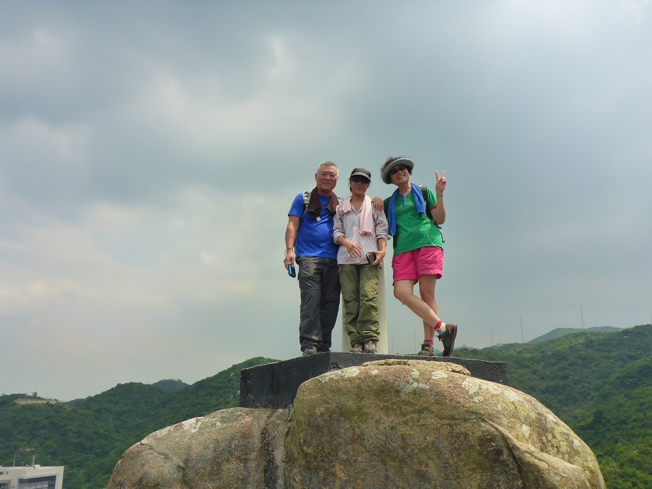 山崗上有一堆大石,測量柱在大石上。爬上最高那塊石,四周360度景物盡收眼底。