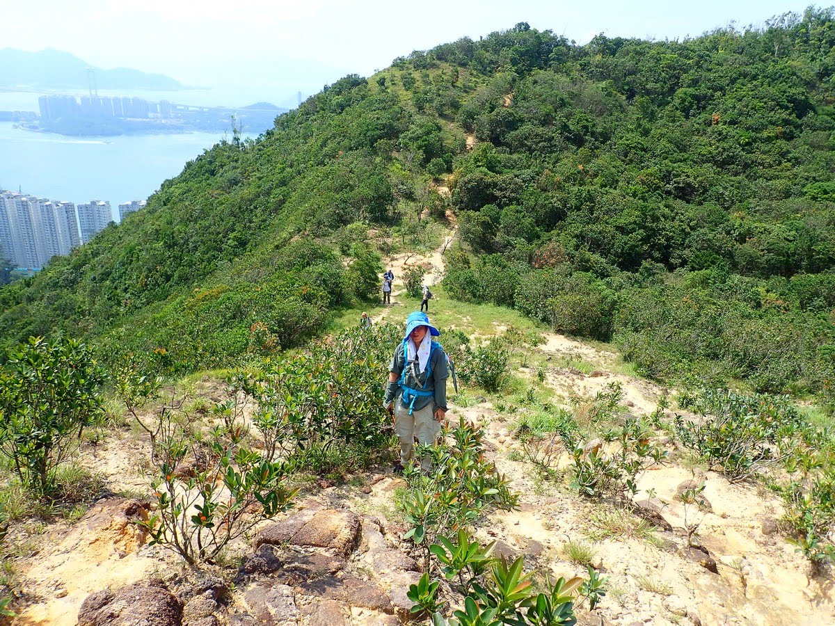 今天有幾位朋友未走過這條路。這條山脊面向大欖涌和北大嶼水道,風景不錯。今天還吹著東南風,雖然陽光頗猛,但沿途都感覺清涼,不像是在炎夏行山。