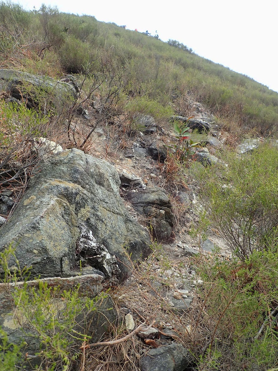 接著便是陡坡。還要爬上幾塊大石。回望鶴藪水塘