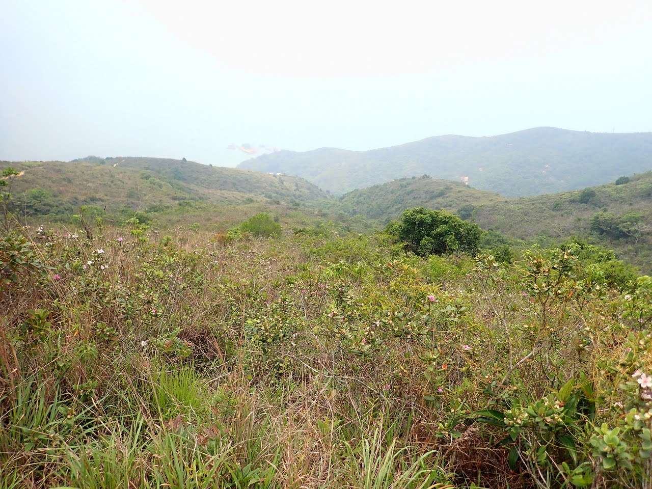 這條路向東北,應是落新鋪咀的路。雖然今早天陰,沒有陽光直射下來,但走了兩次回頭路,不想再花時間走山路了,改向南,從青嶼幹線旁邊的人工斜坡落山吧。這條路較快和舒服