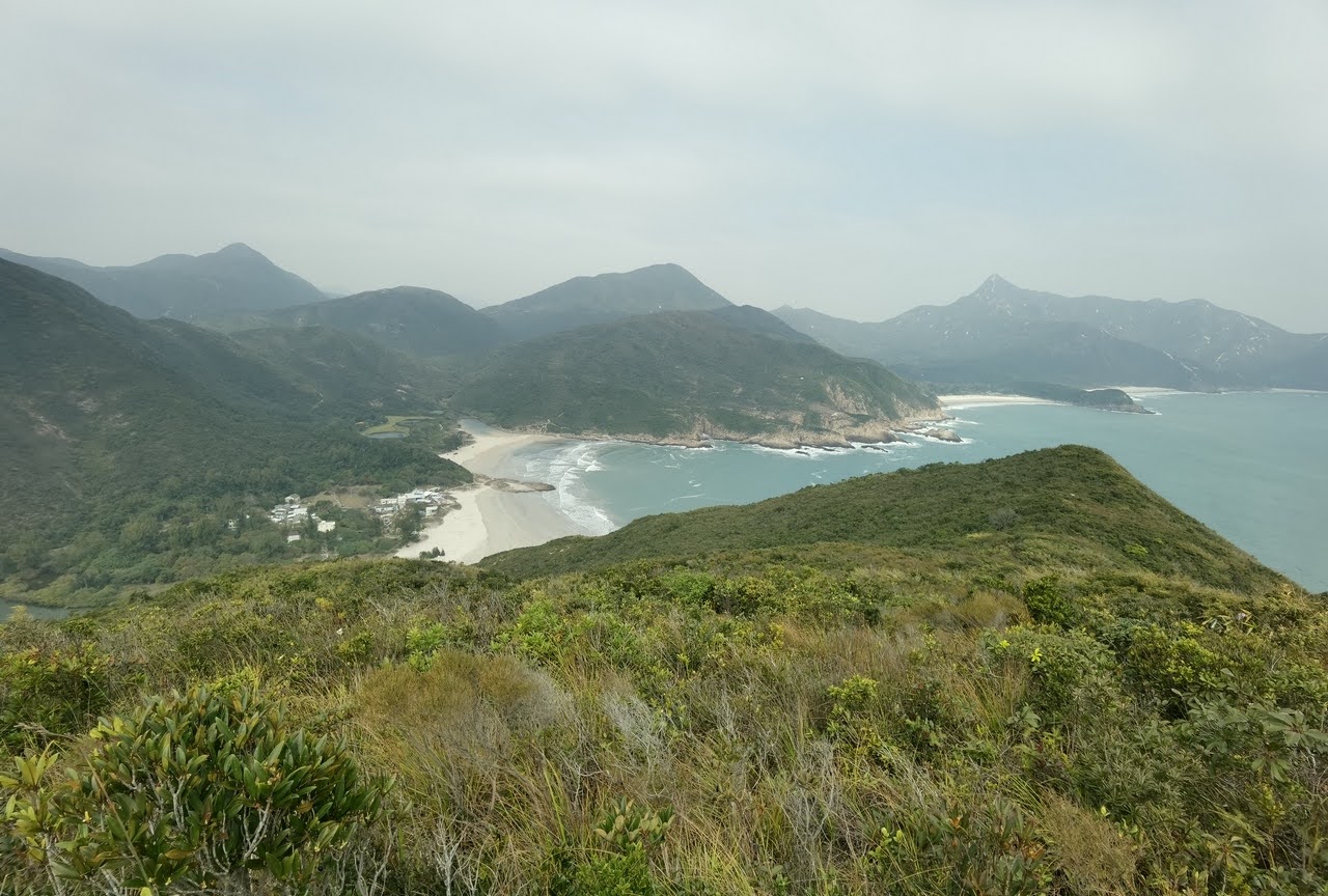 時間不早了。未開始上大蚊山已在螺地墩花了一小時,見右邊沙灘旁邊這山坡上有路上麥徑,不如改線去西灣山出萬宜吧。