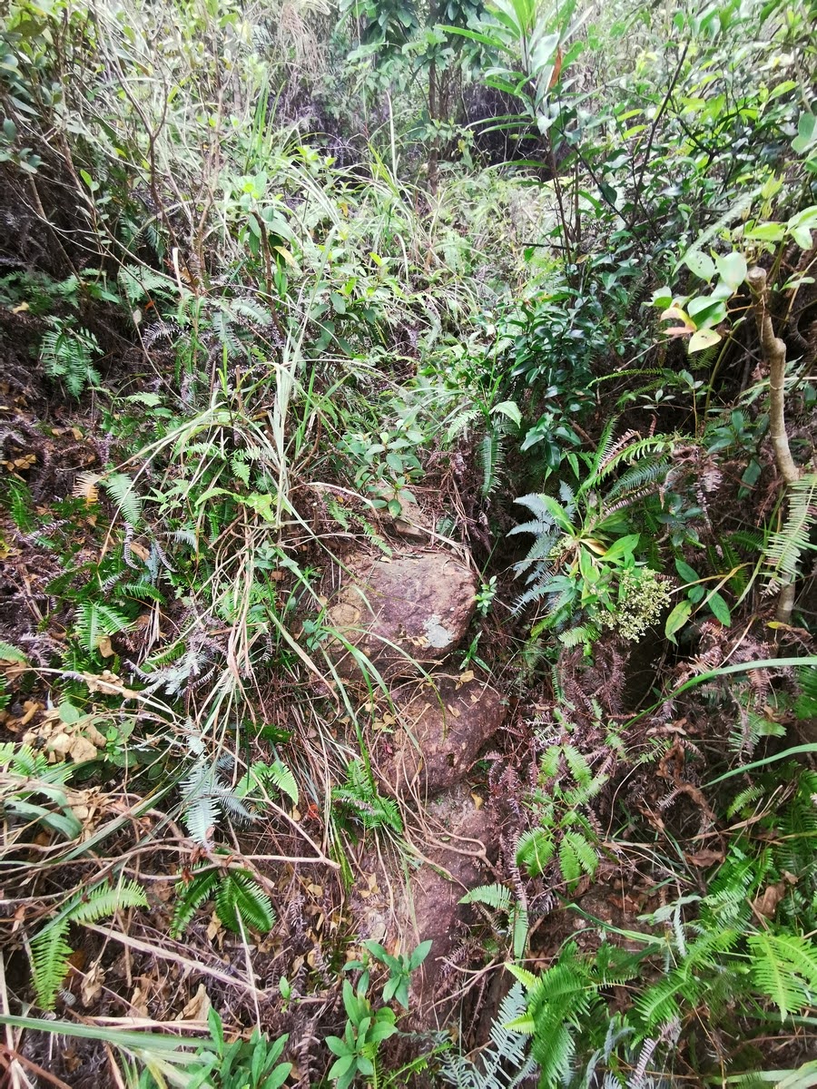 到山頂衛徑前最密,芒萁遮蔽地面的石塊。這段路看似是在一條乾澗上。