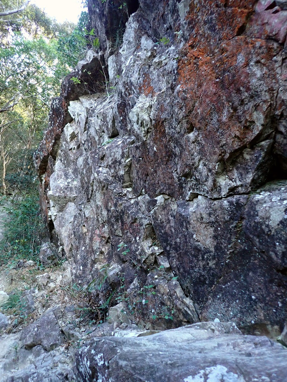 這段崎嶇山徑繞過簷崖石壁(箭咀位置),約有兩百米高。有石河、小坡板,不會沉悶。