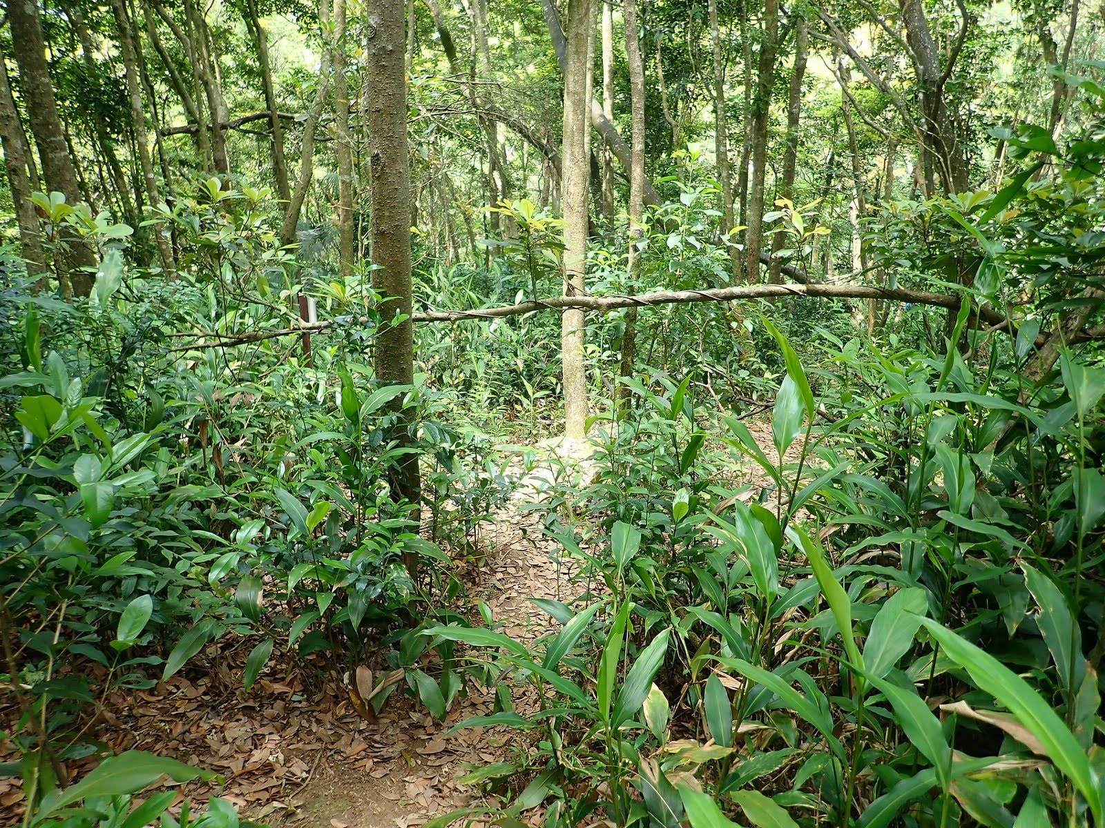 林內是有路的。不過被塌下來的藤蔓、樹冠遮蔽了。